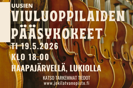 Jokilatvan opisto tarjoaa viulunsoiton opetusta toiminta-alueellaan. Haapajärvellä lukuvuodesta 2026-2027 alkaen vapautuville oppilaspaikoille haetaan nyt uusia oppilaita.